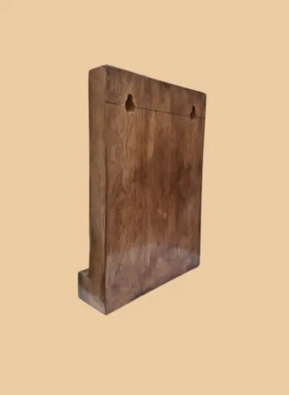 Este organizador de pared combina funcionalidad y estilo, fabricado en madera de banak de alta calidad con un diseño rectangular y elegante.